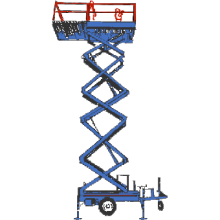 Lätt, enkel saxlift utan hjuldrift. Skjutbar plattform som uppnår 4,25 meters längd utan förflyttning. Transporteras som släpvagn efter bil. Ett bra alternativ till skylift vid t.ex. målning av fasader, men kräver relativt plan mark.